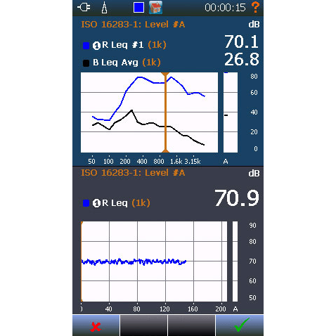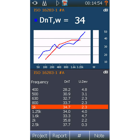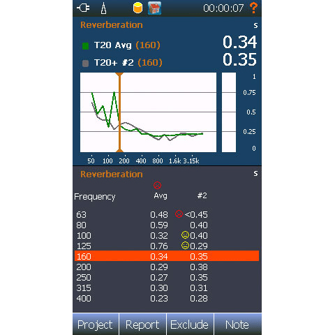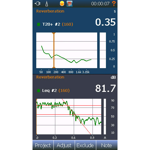 - Reverberation time measurements with parallel calculation of T15, T20, T30, Tmax and EDT.
